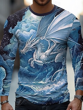 Herre ملابس السهرة للرجال kostyme T skjorte Langermet T skjorte 3D-utskrift Crew-hals Skjorte Mote overdrevet Gate Daglig Svart Sommer Vår Høst Klær S M L XL XXL XXXL