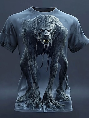 Herre Dyr Ulv T skjorte Langermet T skjorte 3D-utskrift Crew-hals Skjorte Mote Grunnleggende Avslappet Daglig Gate Blå Sjøblå Oransje Sommer Vår Klær S M L XL XXL XXXL