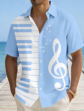 Herre Piano Musikknotater Skjorte Sommerskjorte Skjorte med knapper Kortermet Vintage retro utendørs Feriereise musikk festival Sommer Aftæpning 3D-utskrift Lin som skjorte Blå Svart Lilla Grønn