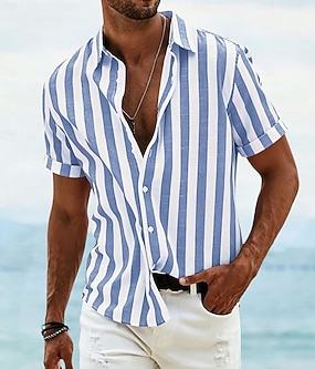 Herre linskjorte Guayabera skjorte Sommerskjorte Uformell skjorte Strandskjorte Stripet Feriereise Hawaiisk Hvit Blå Kakifarget Grå Langermet Knaphul Vår sommer Klær Trykt mønster