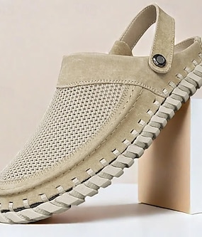 beige slip-on sandaler for menn med overdel i mesh, justerbar stropp og komfortabel såle – ideell for fritidsklær, utendørs og sommeraktiviteter