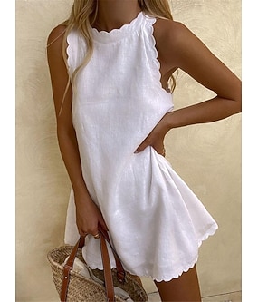Dame Mini kjole Hvit kjole Eksamenskjole Kjole i bomullslinn Solkjole Grunnleggende Fritid Daglig Feriereise Stevnemøte Normal عادي Ermeløs Crew-hals Blå Svart Hvit Rosa Sommer Vår