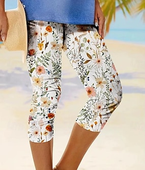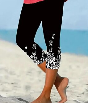 Dame Leggings Capri Bukser Høy Elastisitet Ferie Moteklær Hawaii Ankellengde Midje Blomster Grafisk Trykk Termisk Varm Pustende Myk Ferie Uformell Daglig