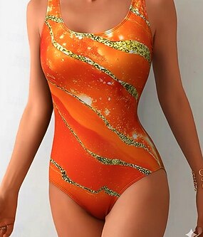 Dame Badetøy Ett stykke Skjørt Badedrakt Elegant Ferie Nyanse Grafisk Ermeløs Badedrakter