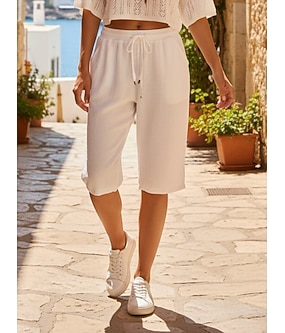Dame Shorts Sommershorts Løstsittende shorts Ferie Fritid Bohem Knelengde Middels midje عادي Lomme Elastisk midje Komfort Mikroelastisk Daglig utendørs Feriereise Svart Hvit Navyblå Kakifarget Sommer