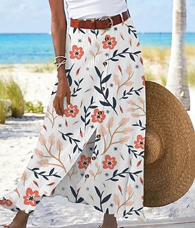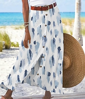 Dame Fritid Bohem Maksi Mellomhøyt liv Skjørt Blomstret Trykt mønster Slitte tupper Mikroelastisk Gate Ut på byen Blå Himmelblå Brun Grønn Sommer Polyester
