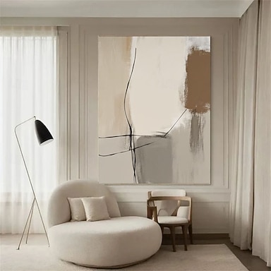oljemaleri håndlaget original beige grå teksturert lerretsmaleri stor brun abstrakt veggkunst beige abstrakt maleri grå minimalistisk soveromsdekor maleri