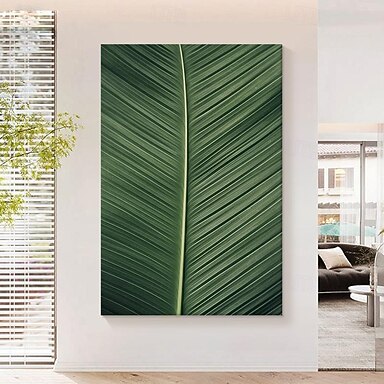 håndlaget oljemaleri på lerret veggkunst dekorasjon abstrakt grønne planter bananblad til stuedekorasjon strukket ramme hengende maleri/rullet rammeløs ustrukket maleri