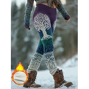 Kvinnenes Viking Boho Fleece Foret Leggings Leggings Ferie Vintage Etnisk Stil Full Lengde Høy Midje Blomster Grafisk Geometrisk Mønster 3D Trykk Termisk Varm Vindbestandig Komfortabel Stretchy