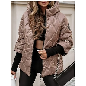 Dame Parkas Bekvem Pustende Glidelås Fritid عادي Feriereise Gate Avslappet Dagligdagstøy Glidelås Normal Med hette Normal Langermet Yttertøy Svart Hvit Kamel Vår Høst