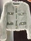 Dame Vinterfrakk Fuskepels Hold Varm Bekvem Knapper Aktiv Mote عادي utendørs Ut på byen Helg Normal Crewneck Normal Langermet Yttertøy Blå Kakifarget Høst Vinter