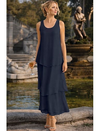 Linjeform Ankellengde Gjestekjole til bryllup Formell kjole Løstsittende kjole Kjole til brudens mor Ermeløs V-hals Elegant Enkel Bryllupsgjest Semi-formelt Chiffon med Niveauer Ensfarget