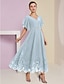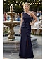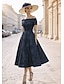 Linjeform Kjoler Te-lengde Festkjole Cocktail Kjole Gjestekjole til bryllup Kjole til brudens mor Kortermet Enskuldret Elegant Årgang Formell Stretchstoff med Bølgemønster Appliqué Blomst