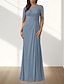 A-linje Linjeform Kjoler Gulvlengde Gjestekjole til bryllup Formell kjole Aftenkjole Kjole til brudens mor Halvlange ermer Båthals Elegant Enkel Minimalistisk Formell Chiffon Jacquard Sjale med