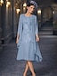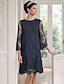 Linjeform Kort mini Festkjole Cocktail Kjole Gjestekjole til bryllup Kjole til brudens mor 3/4 ermer Besmykket Elegant Bryllupsgjest Bryllupsfest Blonder Tyll med Appliqué
