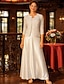 Todelt A-linje Dress dress Ankellengde Gjestekjole til bryllup Kjole til brudens mor Langermet Crew-hals Elegant Formell Bryllupsgjest Kirke Chiffon Jakke kjoler med Blonder Drapert Niveauer