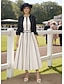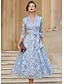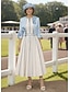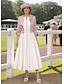 A-linje Te-lengde Blazer kjoler Formell kjole Kjole til brudens mor Langermet Skjortekrage Elegant Årgang Formell Bryllupsgjest Kentucky Derby Chiffon Sateng Jacquard med Sløyfe(r) Plissert Blomst
