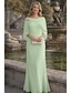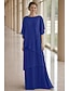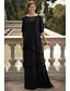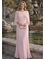 A-linje Kjoler Gulvlengde Gjestekjole til bryllup Formell kjole Aftenkjole Kjole til brudens mor 3/4 ermer Båthals Elegant Enkel Minimalistisk Formell Chiffon Sjale med Bølgemønster Perledetaljer