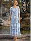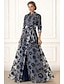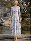 A-linje Ankellengde Festkjole Cocktail Kjole Gjestekjole til bryllup Kjole til brudens mor 3/4 ermer Besmykket Elegant Blomster Mor Formell Kentucky Derby Sateng med Plissert Appliqué