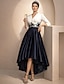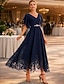 A-linje Asymmetrisk Te-lengde Festkjole Cocktail Kjole Gjestekjole til bryllup Kjole til brudens mor 3/4 ermer Skjortekrage Elegant Asymmetrisk lengde Formell Bryllupsgjest Sateng Blonder med