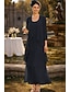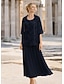 Todelt A-linje Ankellengde Te-lengde Gjestekjole til bryllup Kjole til brudens mor Ermeløs 3/4 ermer Båthals Elegant Enkel Fritid Formell Bryllupsgjest Kentucky Derby Sateng Stretch Crepe med