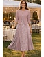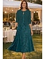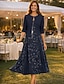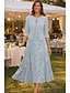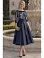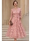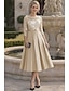 A-linje Te-lengde Festkjole Cocktail Kjole Gjestekjole til bryllup Kjole til brudens mor Halvlange ermer Øsehals Elegant Årgang Bryllupsgjest Sateng Blonder med Bølgemønster Appliqué