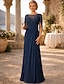 Linjeform Gulvlengde Ballkjole Perlebrodert Festkjole Kjole til brudens mor Kortermet Crew-hals Elegant Årgang Luksuriøs Formell kveld Bryllupsfest med Perlearbeid