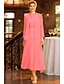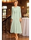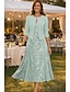 3 -delt drakt Te-lengde Midi kjole Kjole til brudens mor Langermet Øsehals Elegant Årgang Formell Bryllupsgjest Semi-formelt Chiffon Jacquard Innpakking inkludert med Kappe Blomst