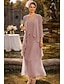 Todelt Linjeform Te-lengde Gjestekjole til bryllup Kjole til brudens mor Ermeløs Besmykket Elegant Plusstørrelse Bryllupsgjest Formell kveld Chiffon Innpakking inkludert med Belte / bånd Plissert