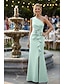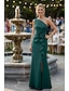 Linjeform Gulvlengde Gjestekjole til bryllup Formell kjole Aftenkjole Kjole til brudens mor Ermeløs 3/4 ermer Enskuldret Elegant Enkel Formell Stretch Crepe med 3D-blomster Drapert
