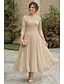 A-linje Ankellengde Festkjole Cocktail Kjole Gjestekjole til bryllup Kjole til brudens mor 3/4 ermer Besmykket Elegant Plusstørrelse Bryllupsgjest Bryllupsfest Chiffon Blonder med Bølgemønster