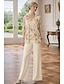 Linjeform Buksedrakt 3 -delt drakt Gulvlengde Kjole til brudens mor Ermeløs 3/4 ermer Halvlange ermer Cowl-hals Halsbåt V-hals Elegant Årgang Fest Bryllupsgjest Ferie Bryllupsfest Chiffon Blonder med