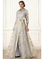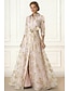 A-linje Gulvlengde Perlebrodert Gjestekjole til bryllup Formell kjole Kjole til brudens mor Langermet Skjortekrage Elegant Årgang Høy splittelse Formell Bryllupsgjest Sateng med Glimmer Spalte