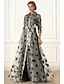 A-linje Gulvlengde Skjortekjole Gjestekjole til bryllup Formell kjole Kjole til brudens mor 3/4 ermer Skjortekrage Elegant Enkel Formell Organza Jacquard med Sløyfe(r)