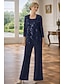Todelt Buksedrakt Ankellengde Kjole til brudens mor 3/4 ermer Øsehals Løse skuldre Elegant Fest Formell Bryllupsgjest Stretchstoff med Belte / bånd