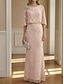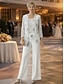 3 -delt drakt Buksedrakt Gulvlengde Perlebrodert Formell kjole Kjole til brudens mor Kjole til brudens mor Langermet Crew-hals Besmykket Elegant Formell Bryllupsgjest Chiffon Innpakking inkludert med