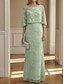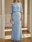 Todelt Linjeform Knelengde Gjestekjole til bryllup Kjole til brudens mor 3/4 ermer Løse skuldre Elegant Fest Formell Bryllupsgjest Chiffon Blonder Imitert silke med Sløyfe(r)