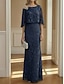 Linjeform Gulvlengde Gjestekjole til bryllup Formell kjole Aftenkjole Kjole til brudens mor Halvlange ermer Besmykket Elegant Mor Formell kveld Blonder med Appliqué
