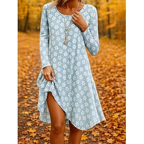 Dame Mini Kjole Crew Neck Lang Erme Casual Kjole T Skjorte Kjole Tee Kjole A-Linje Kjole Casual Regular Fit Blomster Grafisk Blå Lilla Grønn Khaki Høst Vinter