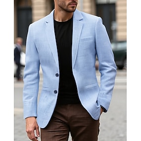 Herre Blazer Virksomhet Cocktailfest Bryllupsfest Mote Fritid Vår Høst Polyester عادي Lomme Knapper Bekvem Enkeltkneppet Blazer Himmelblå kaffe