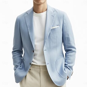 Herre Blazer i lin Sport Coat Halskrage Mote Fritid Ensfarget Blazer Himmelblå Standard passform Enkelt Brystet Enn-knapp