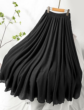 dame imitert bomullslin ferieskjørt bohemsk vintage avslappet maxi skjørt med høy midje ensfarget elastisk midje flagrende elastisk daglig strand blå lys rosa mørk rosa svart sommer bomullslin
