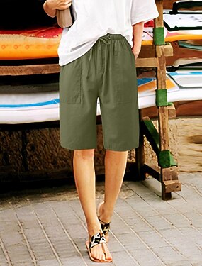 Dame Imitert bomullslin Shorts Sommershorts Strandshorts Mote Gatemote Komfort Kort Medium Midje عادي Elastisk midje comfy Utendørs Bekvem Gate Dagligdagstøy Ut på byen Vin Svart Rosa Militærgrønn