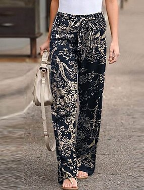 Dame Imitert bomullslin Bukser Sommerbukser Mote Gatemote Full lengde Naturlig Blomsternål i krystall Printer comfy Utendørs Bekvem Dagligdagstøy Helg Mørkerød Gul-Brun Gylden Honning Marineblå Sommer