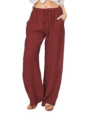 Dame Normal Imitert bomullslin Frekk Bred Bukseben kinesisk Mote Full lengde Medium Midje عادي Sidelommer Bred Bukseben Posete Komfort Uelastisk Avslappet Helg Lyseblå Svart Hvit Vin Løstsittende