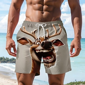 Herre Tegneserie Reinsdyr Morsom Badeshorts Surfeshorts Medium Midje Hawaiisk Strandferie Sidelommer Mesh fôr Elastisk snøring i midjen Designer Klær