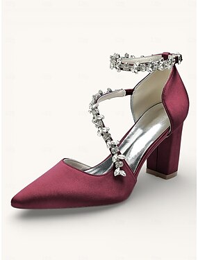 Dame bryllup sko Høyhælte Brudesko Rhinsten Lav hæl Spisstå Elegant Sateng Ankel Stropp Vin Svart Krystall