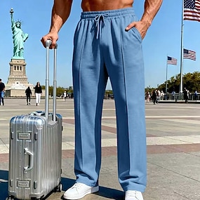 Herre Joggebukser Bukser Joggebukse med rett ben Vaffelbukser Lomme Elastisk midje Snorer عادي Komfort Sport & Utendørs Daglig Mote Fritid Svart Hvit Mikroelastisk