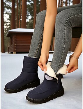 Blå, vatterte, vanntette vinterstøvler for dame med mykt fleecefôr – isolerte og stilige friluftsstøvler for snø, fotturer og vinteraktiviteter