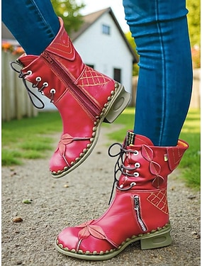 Røde, håndlagde snørestøvletter i ekte skinn til dame – vintage ankelstøvletter for både avslappet og retro stil